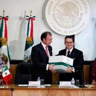 El paquete fue recibido por el vicepresidente de la Mesa Directiva de la Cámara de Diputados, Francisco Arroyo Vieyra y por los presidentes de las Comisiones de Presupuesto, Nuvia Magdalena Mayorga Delgado y de Hacienda, José Isabel Trejo Reyes.