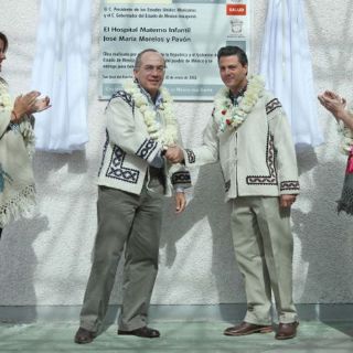 El presidente Calderón Hinojosa está acompañado por los miembros del gabinete de Seguridad y Peña Nieto por integrantes de su equipo de transición