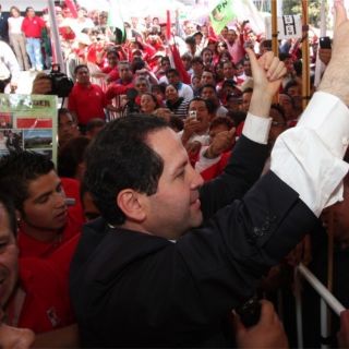 En su primer acto proselitista de campaña, realizado durante los primeros minutos de este lunes en la explanada del monumento "Torres Bicentenario" de esta ciudad, el aspirante a la gubernatura firmó su primer compromiso ante notario público, para desaparecer el impuesto estatal de tenencia vehicular, si gana los comicios del 3 de julio.