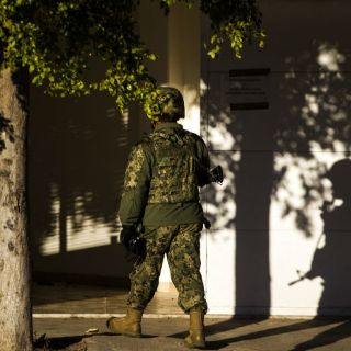Efectivos de la Marina mexicana fuertemente armados alejaron a los curiosos del sitio el sábado, mientras un contingente de periodistas bloqueaba un carril de la avenida a pocas cuadras de la casa. En una intersección, alguien levantó una tapa de alcantarilla y encontró un fusil de asalto abandonado. Finalmente llegó un equipo de marinos, retiró a los reporteros que habían ingresado a la red de alcantarillado y aseguró el arma larga.