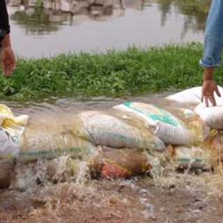 VALLE DE CHALCO, ESTADO DE MÉXICO (15/AGO/2010).- Las precipitaciones pluviales que se han registrado en los últimos días aumentaron el nivel del Canal General, por lo que autoridades municipales y vecinos han colocado costales de arena en el cauce porque se han presentado filtraciones.