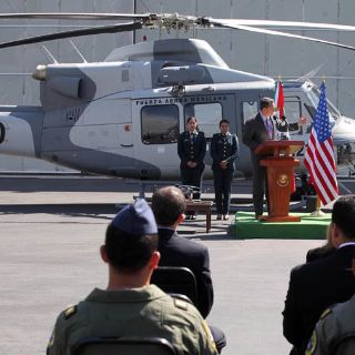 Estados Unidos entregó esta mañana a la Fuerza Aérea Mexicana dos helicópteros tipo Bell-412 con los que suman ya siete de los ocho comprometidos en el marco de la coordinación internacional de la