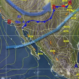 El sistema frontal que a las 4:00 horas se ubicó en el norte de Sonora y Chihuahua, generará descenso de temperatura y posibles lluvias ligeras en esta última entidad, así como en Coahuila y Durango debido a que estará asociado con un canal de baja presión.