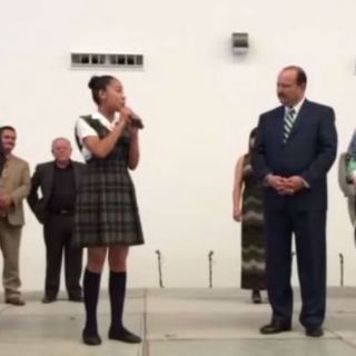 GUADALAJARA, JALISCO (14/MAY/2015).- Una joven estudiante de secundaria identificada como Luz Elena Patricio, aprovechó el momento de su discurso en medio de un evento estudiantil, para dirigir algunas palabras al gobernador de Chihuahua,