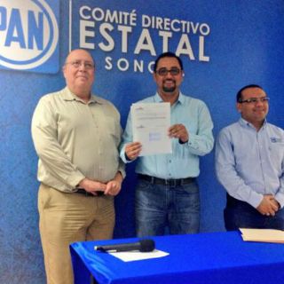 Iván Bernal se presentó ante el PAN de Sonora para presentar la documentación de su registro, acompañado de su familia y del ex alcalde de Agua Prieta, David Figueroa.