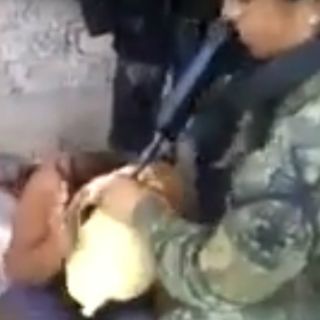 Desde la noche de ayer miércoles comenzó a circular en redes sociales un video donde se observa a personal militar y a un presunto policía federal agraviando a la mujer, a la que en varias ocasiones le colocan una bolsa de plástico en la cabeza.