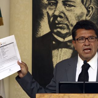 En rueda de prensa, Monreal Ávila presentó la copia de un comprobante electrónico de pago según la cual se transfirieron recursos por 50 millones de pesos de una cuenta de Bancomer a nombre del gobierno del Estado de México, a una de Scotiabank.