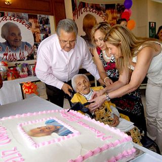 Doña Maximina, quien a sus 113 años se encontraba muy bien de salud y gran lucidez, dijo sentirse muy contenta por el convivio y el enorme pastel adorado con su fotografía al centro.