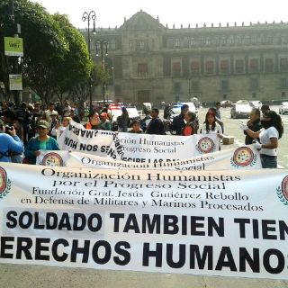 CIUDAD DE MÉXICO (11/OCT/2014).- Diversas organizaciones sociales y familiares de los militares detenidos por la masacre en Tlatlaya, se reúnen en el circuito del Zócalo capitalino para marchar hacia Los Pinos, donde exigirán justicia en el caso y la libertad de los <strong>soldados presos</strong>.