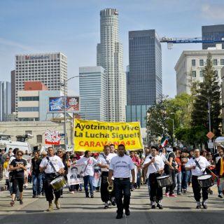 Familiares de normalistas de Ayotzinapa marchan en Los Ángeles