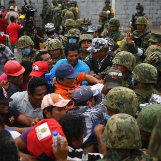 Los inconformes empujaron a los elementos de las fuerzas castrenses pero fueron repelidos por la superioridad de los elementos de la Secretaría de la Defensa Nacional, que tiene activado el plan DN-III de ayuda.