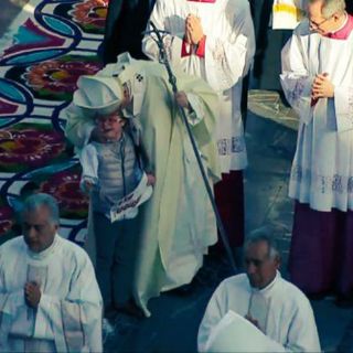 CIUDAD DE MÉXICO (13/FEB/2016).- Durante el recorrido del Papa Francisco de la Antigua Basílica de Guadalupe al nuevo santuario, un niño con Síndrome de Down atravesó el tapete de aserrín para acercarse al Pontífice a saludarlo.