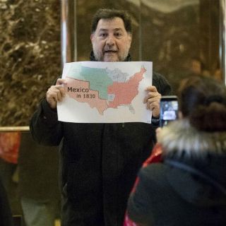 Fernández Noroña, que fue diputado federal entre 2009 y 2012 por el Partido del Trabajo (PT), se presentó en el vestíbulo de la Torre Trump pasadas las 10:30 horas con una mapa actual de México y un mapa de Estados Unidos con las fronteras de 1830.
