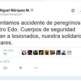 “Cuerpos de seguridad apoyan a lesionados, nuestra solidaridad a familiares”, publicó el mandatario en su cuenta de Twitter.