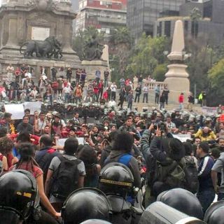 Los granaderos se colocaron en torno al Ángel de la Independencia y en los carriles laterales de Reforma, así como a lo largo de La Palma para impedir la salida del contingente de aproximadamente 600 personas que esperan marchar rumbo a la Plaza de la Constitución.