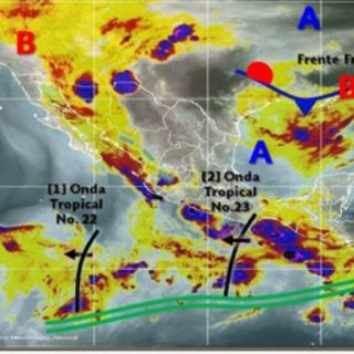 Además informó que las ondas tropicales 22 y 23 se localizan al sureste de la Península de Baja California y sobre Oaxaca y Guerrero, respectivamente.