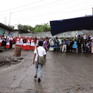 Los manifestantes que portan cartulinas exigiendo la liberación de Cruz Cárdenas e imágenes de la Virgen del Rosario patrona de la comunidad, se han apostado a las puertas de este recinto donde despacha el gobernador Fausto Vallejo Figueroa.