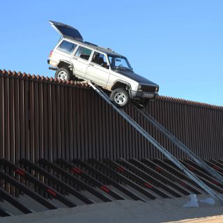 YUMA, ESTADOS UNIDOS (31/OCT/2012).- Presuntos traficantes de drogas que improvisaron rampas con el objeto de cruzar la frontera con una camioneta todo terreno sobre una cerca fronteriza de poco más de cuatro metros de altura tuvieron que abandonar su plan cuando el vehículo se atoró en la parte superior de la barrera, dijeron el miércoles las autoridades.