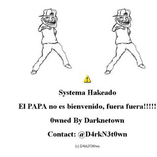 Acompañó los cambios con la leyenda: "Lo sentimos ADMIN usted ha sido HACKEADO, no borramos nada, pero sí queremos decirles que APOYAR A EL PAPA, también los hace CULPABLES de los ABUSOS a los niños y de la sangre que se derrama en todo el mundo a CAUSA de los que Gobiernan la IGLESIA::: BENEDICTOXVI estamos detrás de ti. #Iluminati del mundo somos #Anonymous (sic)".