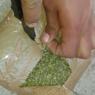 "Era un bulto en forma de cuadro, cubierto de arbustos", señaló la dependencia y agregó que los uniformados procedieron a retirar las ramas y descubrieron que estaban escondidos 20 bloques cubiertos con cinta en color café, los cuales contenían hierba verde y seca, con las características propias a la mariguana.
