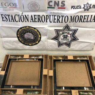 CIUDAD DE MÉXICO (12/AGO/2017).- Durante una inspección en la terminal de autobuses de Morelia, la Policía Federal halló al menos dos kilos de presunta droga sintética oculta en dos cuadros de madera con imágenes de religiosas.