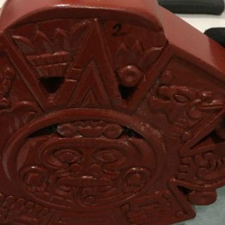 Al abrir la caja se encontró un disco de madera con una imagen alusiva al calendario azteca unido por dos piezas, las cuales al separarlas con un desarmador se halló en su interior una sustancia granulada color blanco, con las características de una droga sintética.