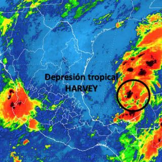 '''Harvey' se ha regenerado a #DepresiónTropical, se ubica a 230 km al oeste-noroeste de Celestún, Yucatán y a 275 km al noroeste de Campeche", publicó en su cuenta de Twitter.