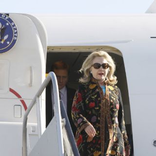 LOS CABOS, MÉXICO (18/FEB/2012).- La secretaria de Estado estadounidense, Hillary Clinton, llegó este sábado al balneario mexicano de Los Cabos (noroeste) para participar en la reunión informal que tendrán el domingo los cancilleres del G20.