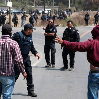 En la cuenta de Twitter @PueblaSegura_, el área de Comunicación Social difundió el material en el que se puede ver a un grupo de mujeres y niños que se interpone entre pobladores y elementos antimotínes.