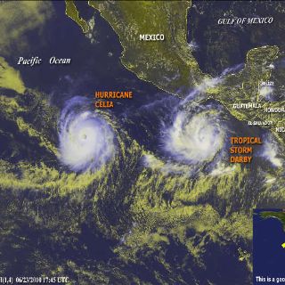 El CNH, con sede en Miami, indicó en su boletín de las 13:00 GMT de hoy que el ojo de "Darby" se encontraba cerca de la latitud 13.6 grados norte y de la longitud 101.2 grados oeste.
