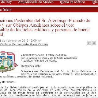 CIUDAD DE MÉXICO (14/FEB/2012).- Con un documento publicado en el portal web del Sistema Informativo de la Arquidiócesis de México, la Iglesia Católica dio a conocer una guía para orientar el voto de los fieles rumbo a las elecciones de julio de este año.