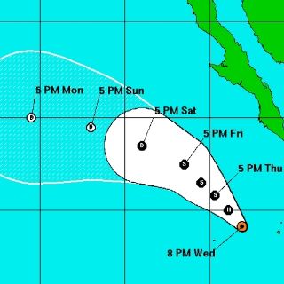 El ciclón, de categoría uno en la escala de cinco de Saffir-Simpson, se ubicaba 540 km al sureste del extremo de la península de Baja California, con vientos máximos de 120 km por hora, indicó el NHC.