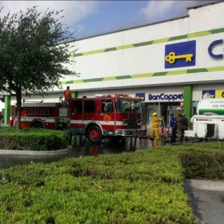 De manera preliminar se reportaban siniestrados la tienda Coppel, Famsa, el banco HSBC y el fuego se propagó hasta una sucursal de Dominos Pizza.