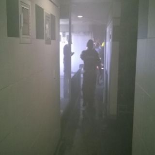 El departamento de Bomberos y una división de la Gendarmería se encargaron de sofocar el fuego y desalojar las instalaciones