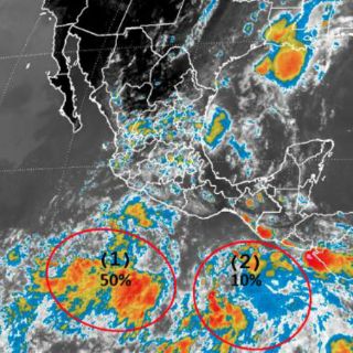 baja presión, ubicada a 550 kilómetros al suroeste de Acapulco, Guerrero, ha incrementado un 50 por ciento la posibilidad de desarrollo ciclónico para las próximas 48 horas, según reporta la Comisión Nacional del Agua (Conagua).