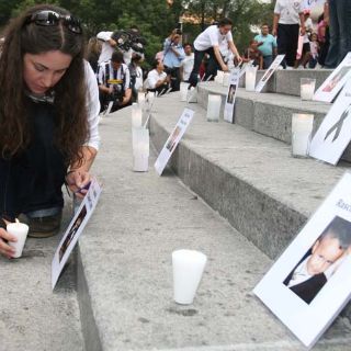 Poco antes de las 20:00 horas, más de un centenar de veladoras fueron encendidas y colocadas en la escalinata del monumento con las fotografías de cada uno de los menores fallecidos.