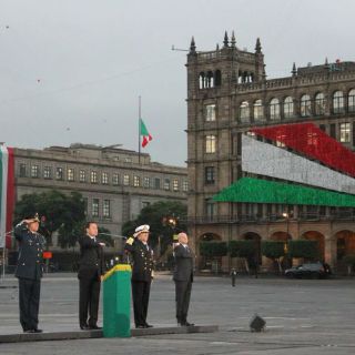 En representación del Presidente Enrique Peña Nieto, quien se encuentra en Nueva York para la Asamblea General de la ONU, el funcionario salió de Palacio Nacional hasta el centro de la Plaza de la Constitución para el izamiento de bandera.