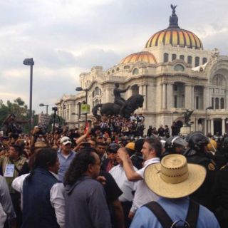 llegó a las inmediaciones del reloj chino, de donde ya no podrán avanzar, pues vallas metálicas se los impiden. Se tenía programado que llegaran aquí los líderes magisteriales y que fueran acompañados por el contingente a su entrada a Gobernación, pero eso ya no ocurrió.