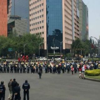 Mientras los miembros de la comisión esperan respuesta por parte de la Segob, se organiza un mitin al cruce de Reforma y Bucareli con los demás contingentes.