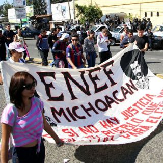 MÚGICA, MICHOACÁN (13/DIC/205).- Luego de que les dictaran auto de formal prisión a 30 normalistas de Michoacán por violaciones a la Ley Federal de Armas de Fuego y Explosivos, integrantes de la Sección 18 de la Coordinadora Nacional de Trabajadores de la Educación (