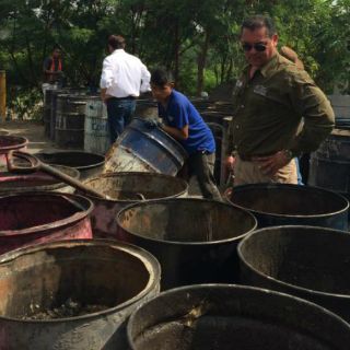 Asimismo, indicó que en total se cuenta con un 90% de avance en la limpieza, derivado de ésta resultaron 32 tambos metálicos de 200 litros cada uno con suelo contaminado y 50 litros de lodo aceitoso, que fueron retirados del lecho del río Pesquería.