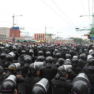 En la calle de Allende se pueden ver más camiones y elementos de seguridad a la espera de tomar posiciones.