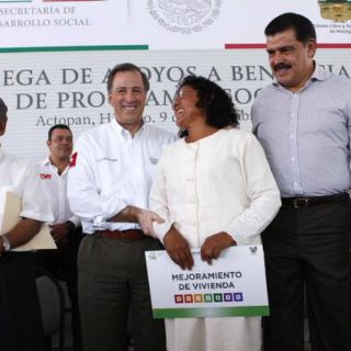 En el municipio de Actopan, Meade Kuribreña y Olvera Ruiz encabezaron la entrega de apoyos de diversos programas sociales, como 3x1 para Migrantes, para el desarrollo de Zonas Prioritarias (PDZP), Empleo Temporal (PET), Prospera, Seguro de Vida para Madres Jefas de Familia, así como pisos firmes y Cuartos Rosa.