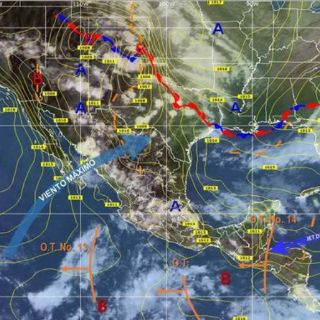 Se presentará una corriente de vientos fuertes de hasta 60 kilómetros por hora sobre la Península de Yucatán, Golfo de Tehuantepec y a lo largo del Golfo de México, se extenderá hacia los estados de Nuevo León y Coahuila.