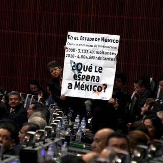 CIUDAD DE MÉXICO (01/SEP/2012).- Legisladores de izquierda afines a Andrés Manuel López Obrador se manifestaron al pie de la tribuna de la Cámara de Diputados, con pancartas en contra del fallo del Tribunal Electoral del Poder Judicial de la Federación (TEPJF) que dio como presidente electo al priísta Enrique Peña Nieto.