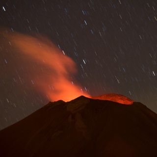 Según el reporte oficial en la pasada madrugada se observó "incandescencia sobre el cráter del volcán que alcanzó como máximo trescientos metros de altura.