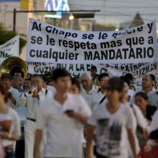 La tarde del miércoles, en las ciudades de Culiacán y Guamúchil, jóvenes, mujeres y niños, acompañados con bandas de música, dotados de camisetas, gorras, alimentos y agua, desfilaron con pancartas alusivas a la figura del " Chapo" Guzmán.