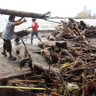 Las corrientes de los ríos Jamapa y Cotaxtla trajeron consigo más de mil toneladas de palizada que fueron a parar a las playas, por lo que personas de ambos ayuntamientos iniciaron la labor de limpiarlas.