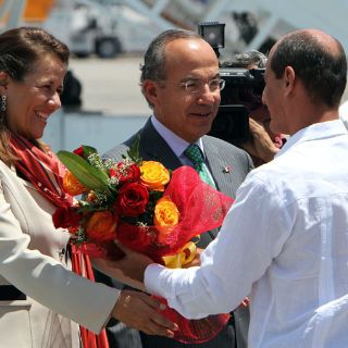 LA HABANA, CUBA (11/ABR/2012).- El Presidente de México, Felipe Calderón, llegó hoy a Cuba a las 12:45 horas locales (16:45 GMT), para reunirse con su homólogo cubano Raúl Castro y continuar mañana su viaje rumbo a Haití y Colombia.