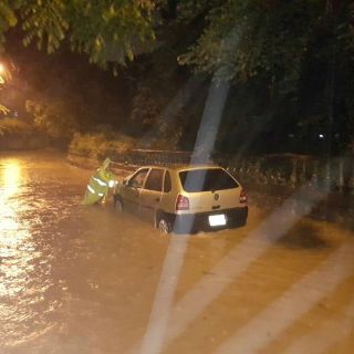 Los intensos escurrimientos en diversas zonas de la ciudad provocaron que varios vehículos quedaran varados, y fueran auxiliados por personal de Protección Civil.